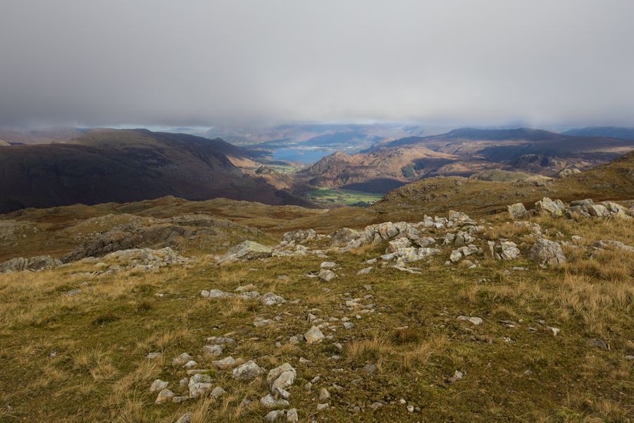 the cloud slowly starting to lift and revealing keswick and derwent water to the north