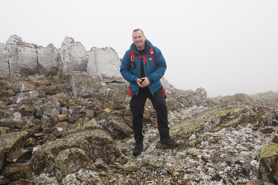 very cold and lacking visibility on the summit of great end