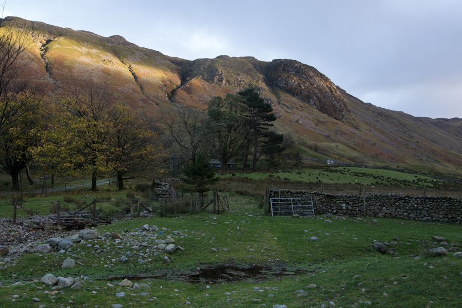 seathwaite farm below. we didn't see anyone else choosing this route today
