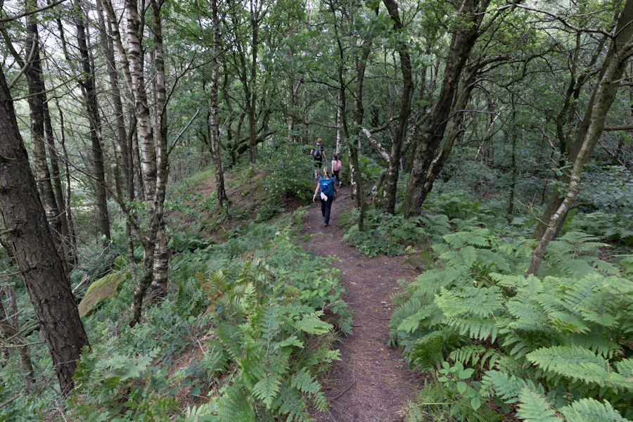 In woodland heading in the direction of Birchwood Farm Caravan Park.