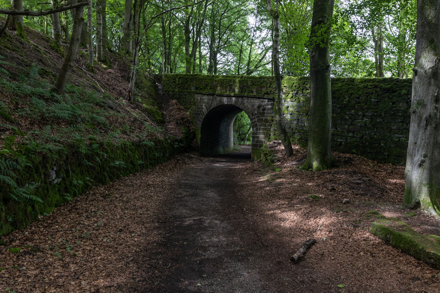 Erin in Gregory Tunnel. Out the other side, we cut right onto a track that went back over the top of the tunnel and on to a trail.