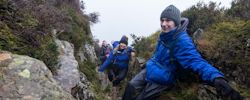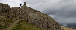 10.09.11 Helm Crag Returning from our trip to Arran we took an overnight pit stop in Ambleside. The next morning we set off for Grasmere. After parking at the village school, we packed our waterproofs and made our way to Easedale. The ascent of Helm Crag was pretty quick at 405m and rather muggy. It certainly looked like it was going to rain at some point. Up on top with very strong gusts I managed to balance on the Lion for just enough time to get myself snapped. I tried to climb up the Howitzer aswell but it was far too slippery today. We then continued along the ridge by traversing the boggy ground over Gibson Knott, Moment Crag, Pike of Carrs, Calf Crag and Brownrigg Moss. Up on the ridge was very bleak! Horizontal rain, gale force winds and the very boggy ground made for a very challenging day. The descent into Far Easedale wasn't much easier either, as the becks were bursting from all the recent rain to the point where the paths were looking more like becks themselves. We squelched back to Grasmere, windswept and tired. It may have been nasty weather but as usual it was still a great day in the Lakes. |