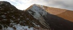 09.12.11 Robinson, Hindscarth, Dale Head It looked like a light dusting of snow on the fells from down in Newlands this morning. The moment we left the cars, the skies unleashed a heavy bombardment of hail stones and later that day it seemed the weather had plenty more ammunition up it's sleeve. Our first summit, Robinson, was tackled by ascending High Snap Bank. A grassy ridge leading to a couple of fun, simple scrambles to the summit. After a brief rest with hot coffee at the top we followed Littledale Edge to Hindscarth. This turned out to be quite a slog due to very deep snow. We all managed to lose our feet once or twice and occasionally an entire leg. During our traverse over to Hindscarth's summit the weather gave us more than our fair share of strong gales and snow, which resulted in another very brief summit visit. our nice summit was dale head and Due to there being plenty of thick snow and a not so obvious path our descent didn't look partiCUlarly inviting so we decided on an alternate route. We weaved our way down towards dalehead tarn through the deep snow and joined the path leading back to little town just before the rain. today was tough but it was also the first time in snow this year and that's almost always something to smile about.