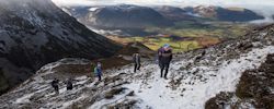 12.01.14 Catbells and Maiden Moor A quick up and down Catbells was extended slightly today by heading up Maiden Moor. The bitter wind was harsh at times but we were not ready to go home just yet. Fortunately the cloud remained high so we had great views. It was Noah's second trip up Catbells in 6 years. He lead the way and encouraged us to extend our journey. |