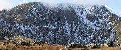 06.02.09 Skiddaw At 6am this morning I set off with Lee, Geordie and Paul from Lincoln. We started from Peter House Farm, followed the track up to Barkbeth Hill and joined the Allerdale Ramble. We briefly used crampons when we ascended a very frozen Ullock Pike and stopped for coffee on Longside Edge. We then split off from the Allerdale Ramble and with Crampons and axes in place we followed a very steep track up to the Summit of Skiddaw. At the summit I was looking forward to a well deserved drink from my hydration bladder. Unfortunately due to a school boy error the fluid in the drinking straw had frozen solid. We then descended Broad End, made a cock up my descending around Cockup instead of the easier route over and then joined the path back to Geordie's car at the farm. |