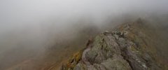 31.10.09 - Helvellyn and Striding Edge The weather report for today kept changing throughout the week. The last time we looked at it it said dry with sunny spells. When we arrived in Glenridding and looked at the route ahead I didn't see a great deal of blue sky. We followed the path beside Mires Beck up onto Birkhouse Moor and continued to the Hole in the Wall. Helvellyn's summit was buried in cloud and Striding Edge was about to be also. Up on Striding Edge it was very slippery and windy. Alan and Geordie led the way with me attempting to take photos in the rain behind them. (not very good photos) Once at the top of Helvellyn with only approximately 1 hour of daylight remaining we chose to descend via Swirrel Edge and then follow Red Tarn Beck back down to Glenridding for dinner at The Travellers Rest. (and a few beers) |