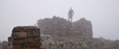 01.09.07 Scafell Pike Today's weather was mostly cloudy and cold. The summit was buried in a rain cloud and we got soaked. Visibility was near zero from half way. We started at Seathwaite Farm and took the path to Stockley Bridge, followed Grains Gill but ignoring Sprinkling Tarn, turned left and then right up to Esk Hause and then right again up to Great End, past Broad crag to descend briefly then back up to the summit. Oh did i say we got soaked?! Power snacked on bananas and a mars bar. Had steak and ale pie in a pub in Cockermouth. |