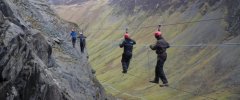 17.11.12 Honister Via Ferrata The day finally arrived! When I first heard about the Via Ferrata route at Honister Slate Mine, it had just been closed down due to some re-routing work around wild plantlife. Now its back with a new Xtreme route aswell. Seeing as half of us are firefighters, it seemed only right that we should commit ourselves to the more exposed course. Not to say we dont tremble at sharp falls like anybody else. We arrived at mid day with a delayed start. Someone in an earlier group was taking a considerably longer time to complete the course. This didnt help lessen the fear already expressed in Shaun's face. lol!