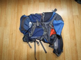 The North Face Terra 25 I am impressed with many elements to this pack. There is a nice large front pocket that is ideal for maps, small side pockets, a large top pocket with key clip and mesh pouch and it comes with its own rain cover. It also has a sleeping bag compartment opening which I have found useful even though i doubt i'll ever be using a 25L pack if i'm carrying a sleeping bag. My only real complaint about it is the shoulder straps. The Terra series goes up to 65L and it seems to me that they have used the same straps on all of them no matter what size. I feel that these straps are far too big and and chunky for a small pack. It kinda feels like you are wearing a parachute. I do prefer it with the backplate removed as it feels far too rigid and the main comparment narrows too much. I'd imagine the larger bags feel a lot more comfortable. |